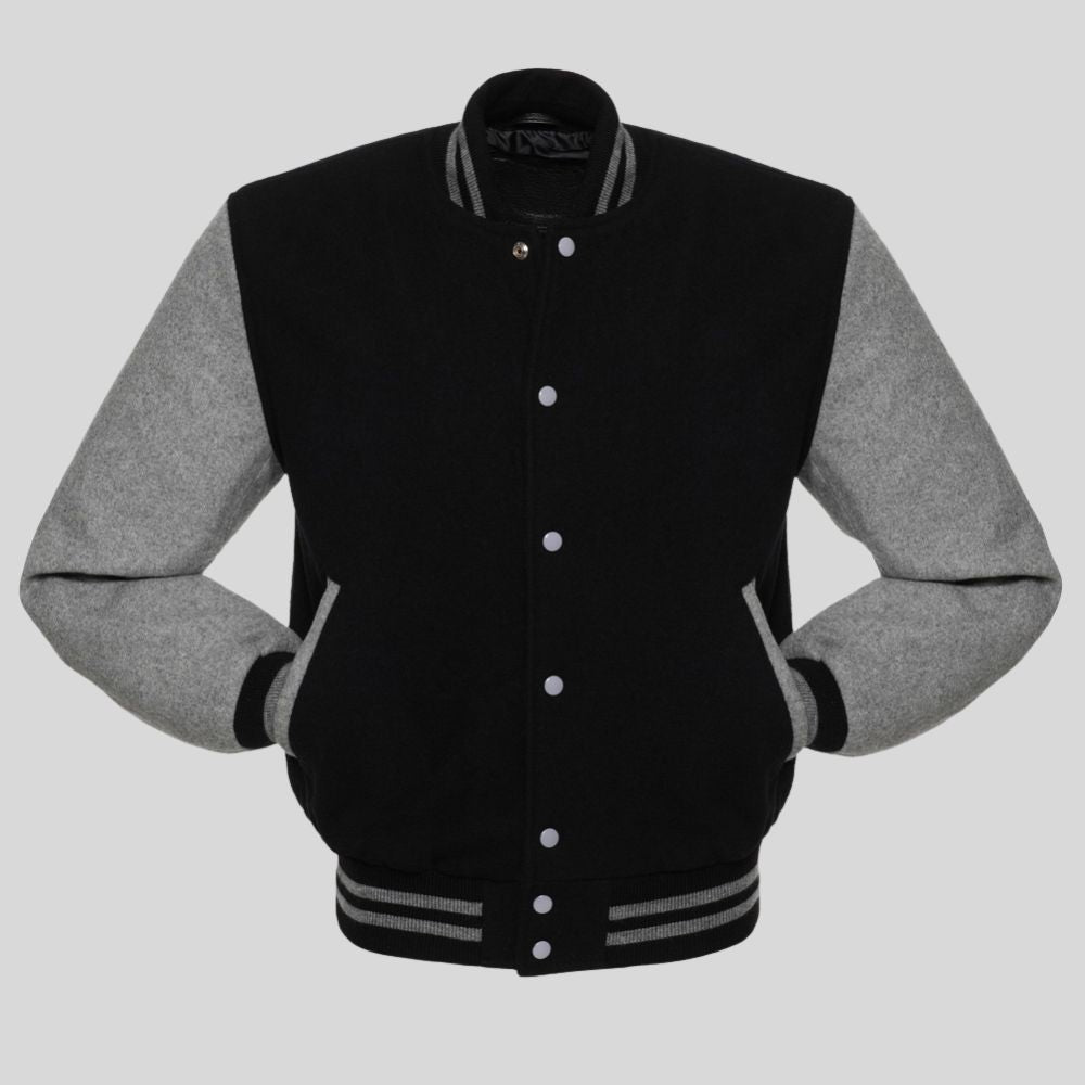 Men’s Varsity Jacket – Black Wool Body & Grey Wool Sleeves