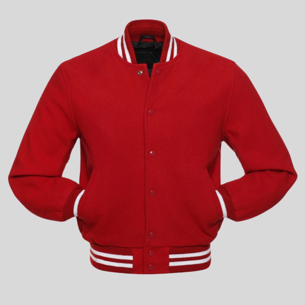 Classic Varsity Jacket – Red Wool Body and Sleeves