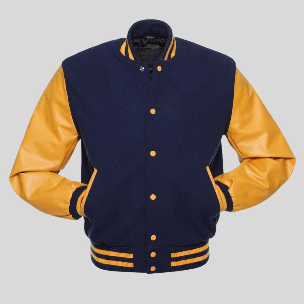 Navy Blue Wool & Lemon Leather Sleeves Letterman Jacket
