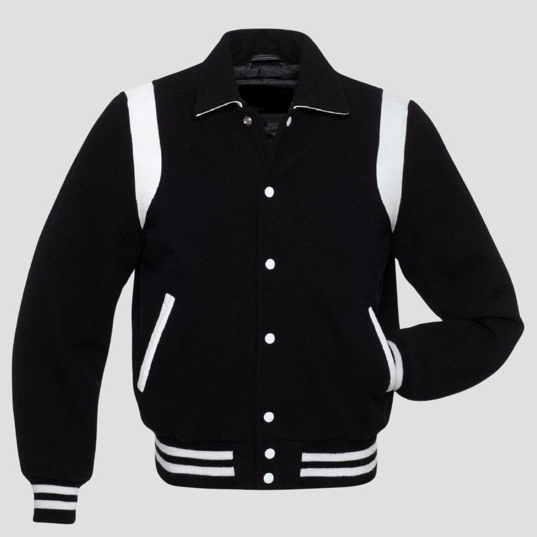 Black & White Letterman Jacket – Classic Varsity Style