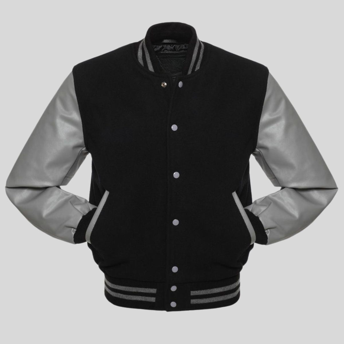 Black Letterman Jacket – Grey Faux Leather Sleeves