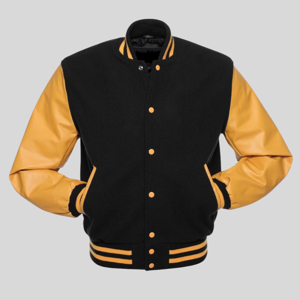 Classic Black Varsity Jacket with Gold Sleeves for Men