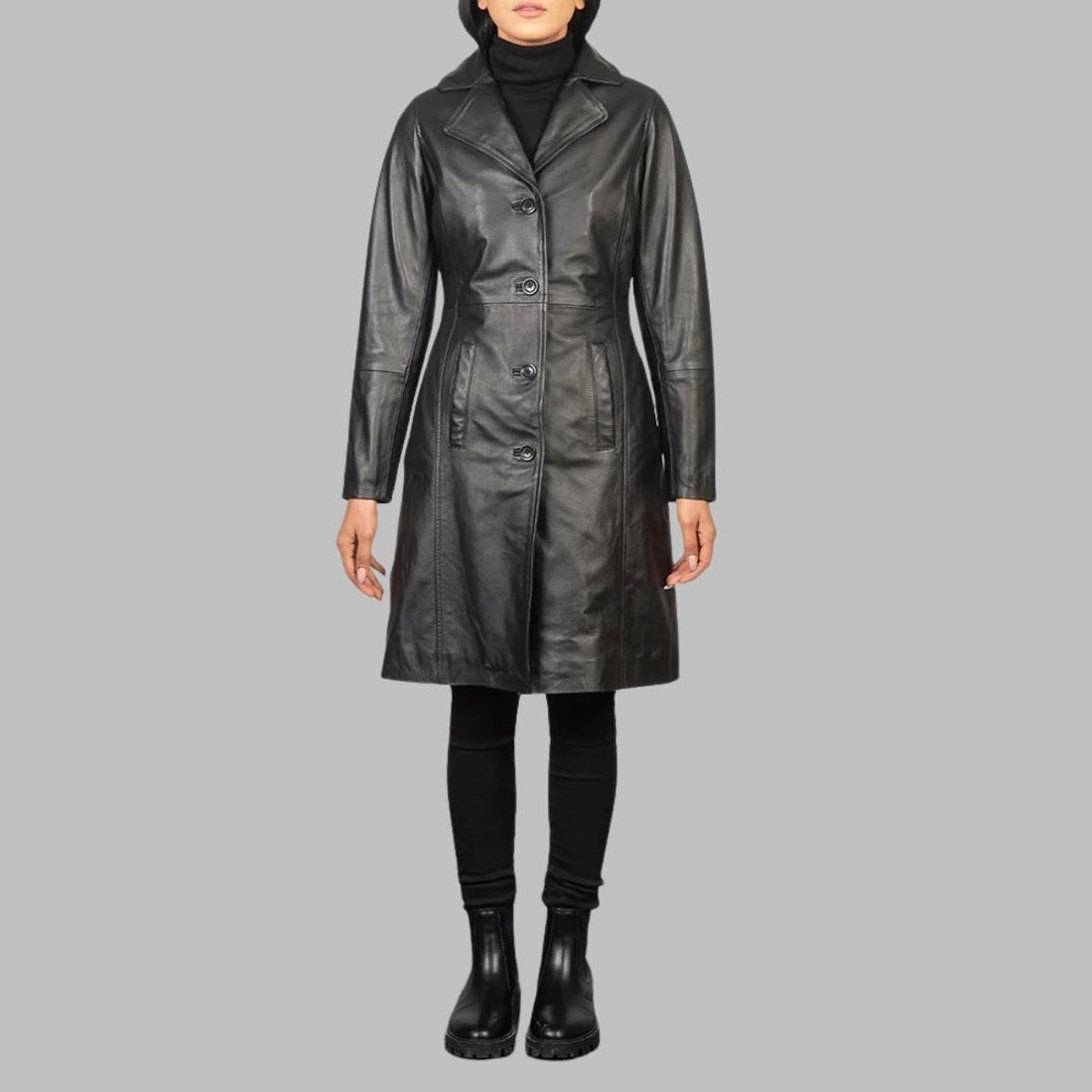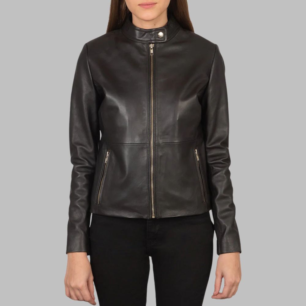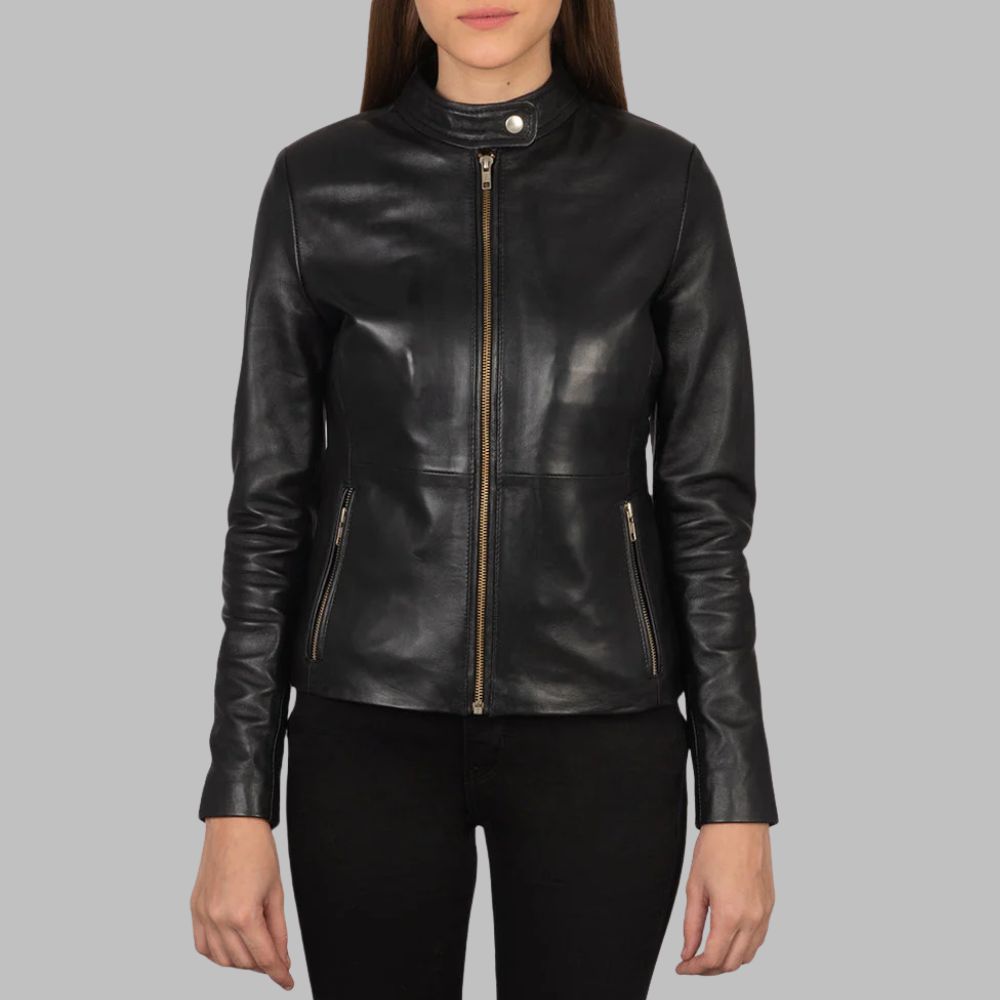 Women’s Black Leather Jacket – Real Sheepskin with Shirt Collar & Zipper