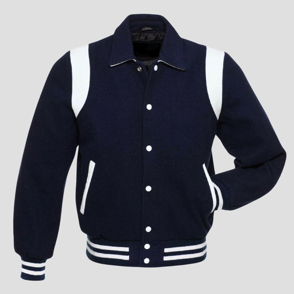 Classic Men's Navy Wool Letterman Jacket – Retro College Style
