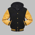 Men’s Black & Old Gold Varsity Jacket with Hood – Wool & Genuine Leather