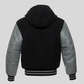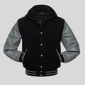 Men’s Varsity Jacket – Black & Grey with Hood (Wool & Leather)