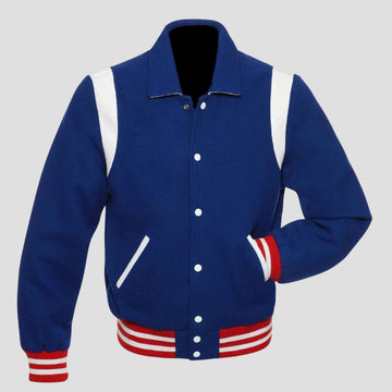 Retro Letterman Wool Jacket – Classic Men's Fit (Royal Blue)