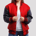 Scarlet Wool & Black Leather Sleeves Letterman Jacket