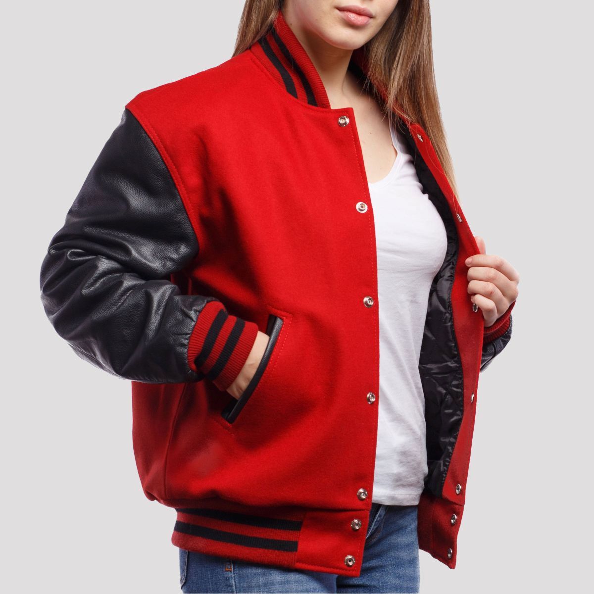 Whether you’re heading to a game, meeting friends, or looking to make a fashion statement, the Scarlet Wool & Black Leather Sleeves Letterman Jacket is the ideal choice for any occasion.