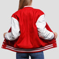 Whether you're heading to a sporting event, meeting friends, or looking to elevate your everyday outfit, the Scarlet Wool & White Leather Sleeves Letterman Jacket is the perfect choice for any occasion.