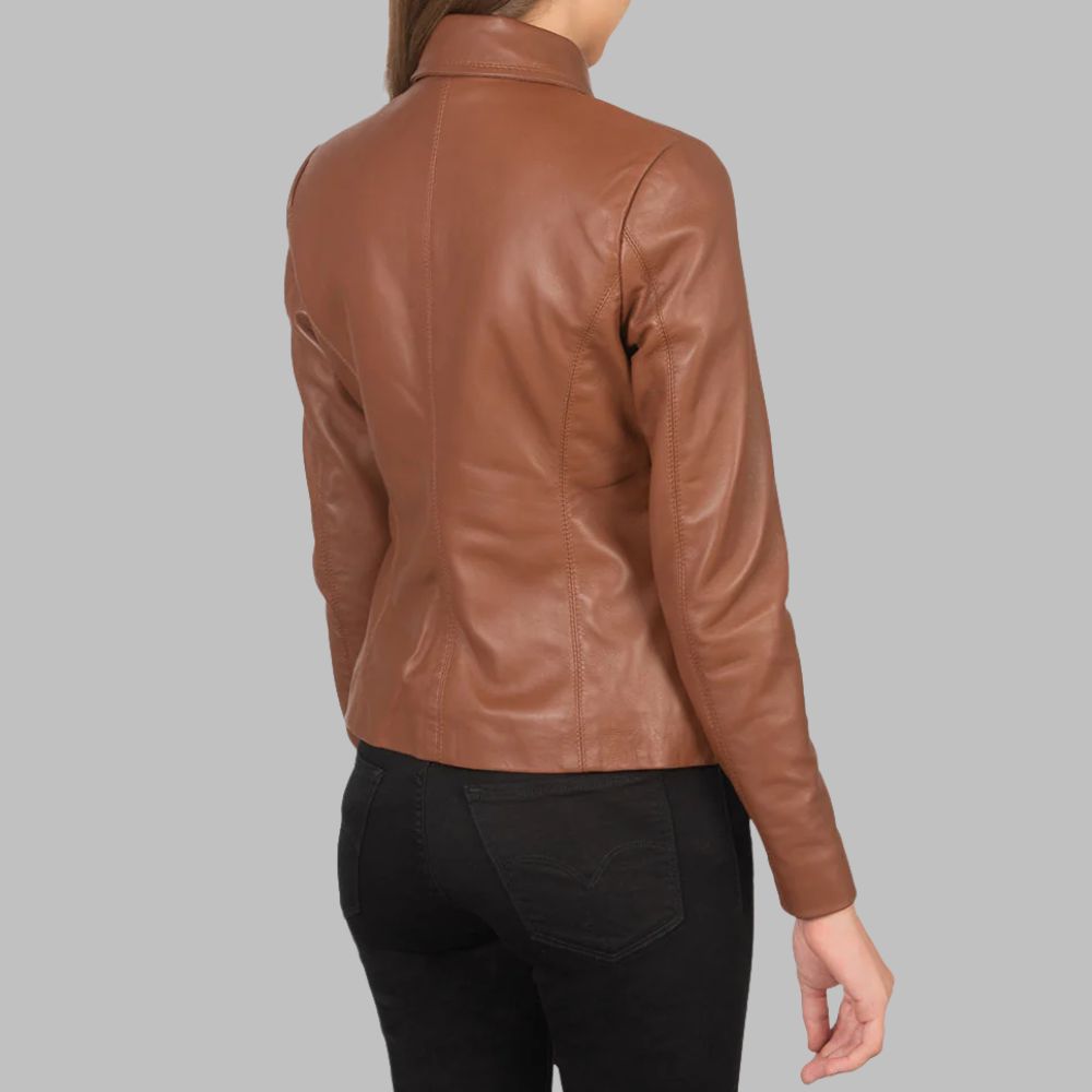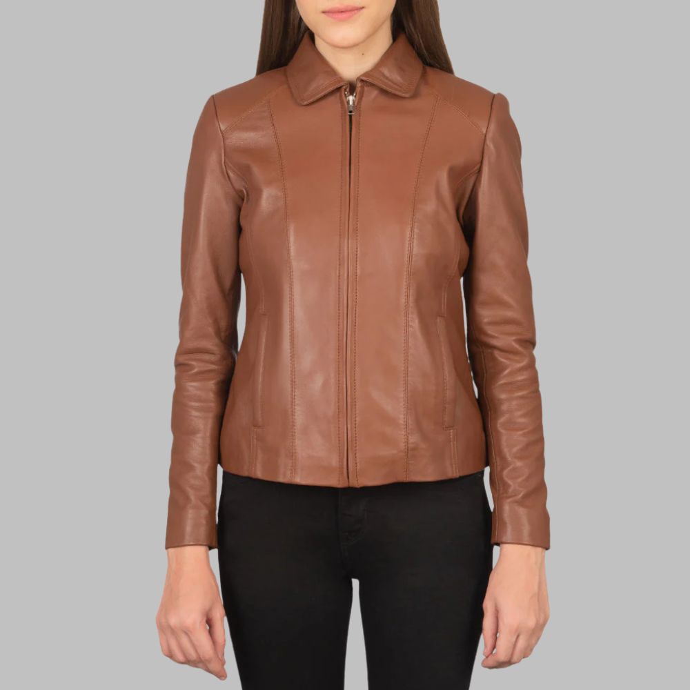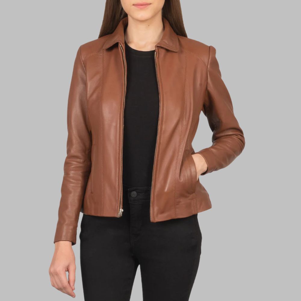 Elevate your outerwear collection with this stylish and durable Women’s Brown Leather Jacket, expertly crafted from real sheepskin leather in a smooth semi-aniline finish. Perfect for both casual and semi-formal wear, this jacket delivers a tailored fit that enhances your silhouette.