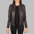 Women’s Maroon Varsity Jacket – Real Sheepskin Leather with Zipper & Wind Flap